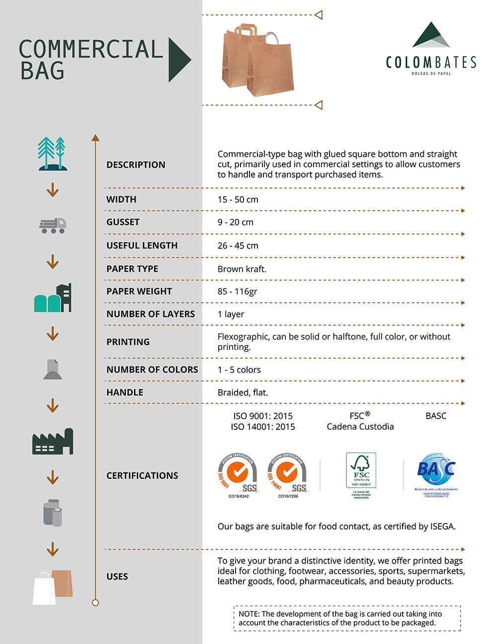 Commercial type bag with attached square bottom and straight cut, primarily used in commercial settings for customers to handle and transport purchased items